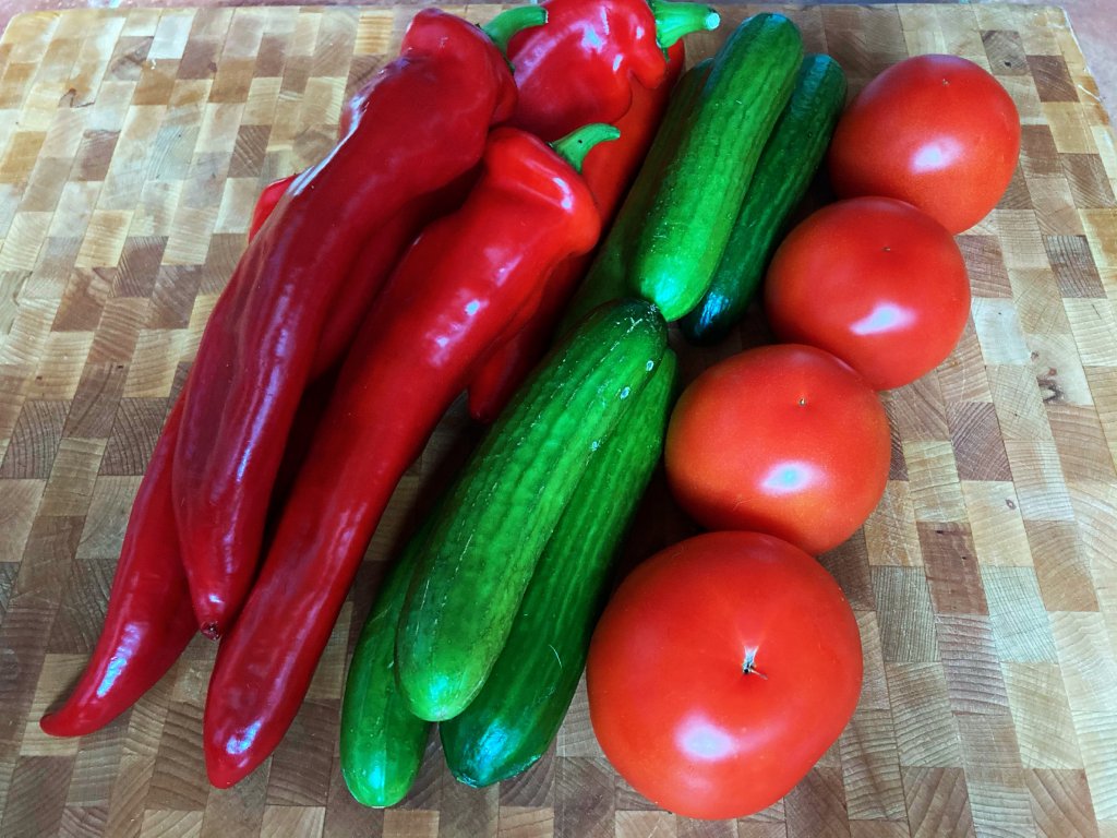 Složení bedýnky: organická zelenina z Kréty bez chemického ošetření - 0,5kg červená paprika Florina, 0,5 kg baby okurky, 0,5 kg okurky hadovky, 0,5 kg cherry rajčata, 0,5 kg velká rajčata, 0,5 kg lilek (1-2 kusy), 0,5 kg avokádo (v případě, že nepůjde navážit přesné množství bude něčeho více a něčeho méně - jen minimálně, například lilky a okurky hadovky mívají 0,3-0,4 kg a je těžké se vejít přesně do půl kila).